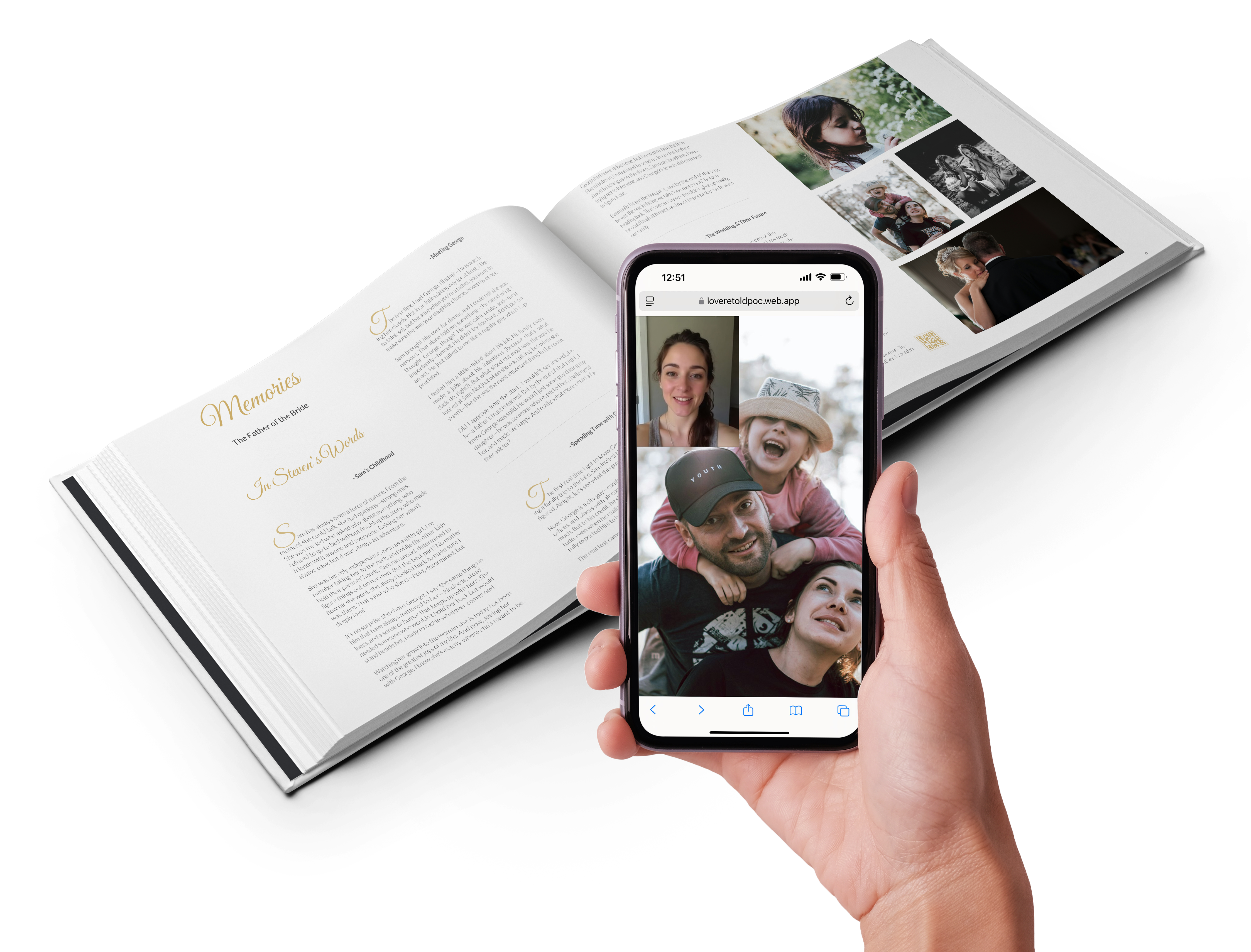 Your stunning book arrives with scannable QR codes. Relive the memories through photos, stories, audio and video messages anytime, years or decades from now.